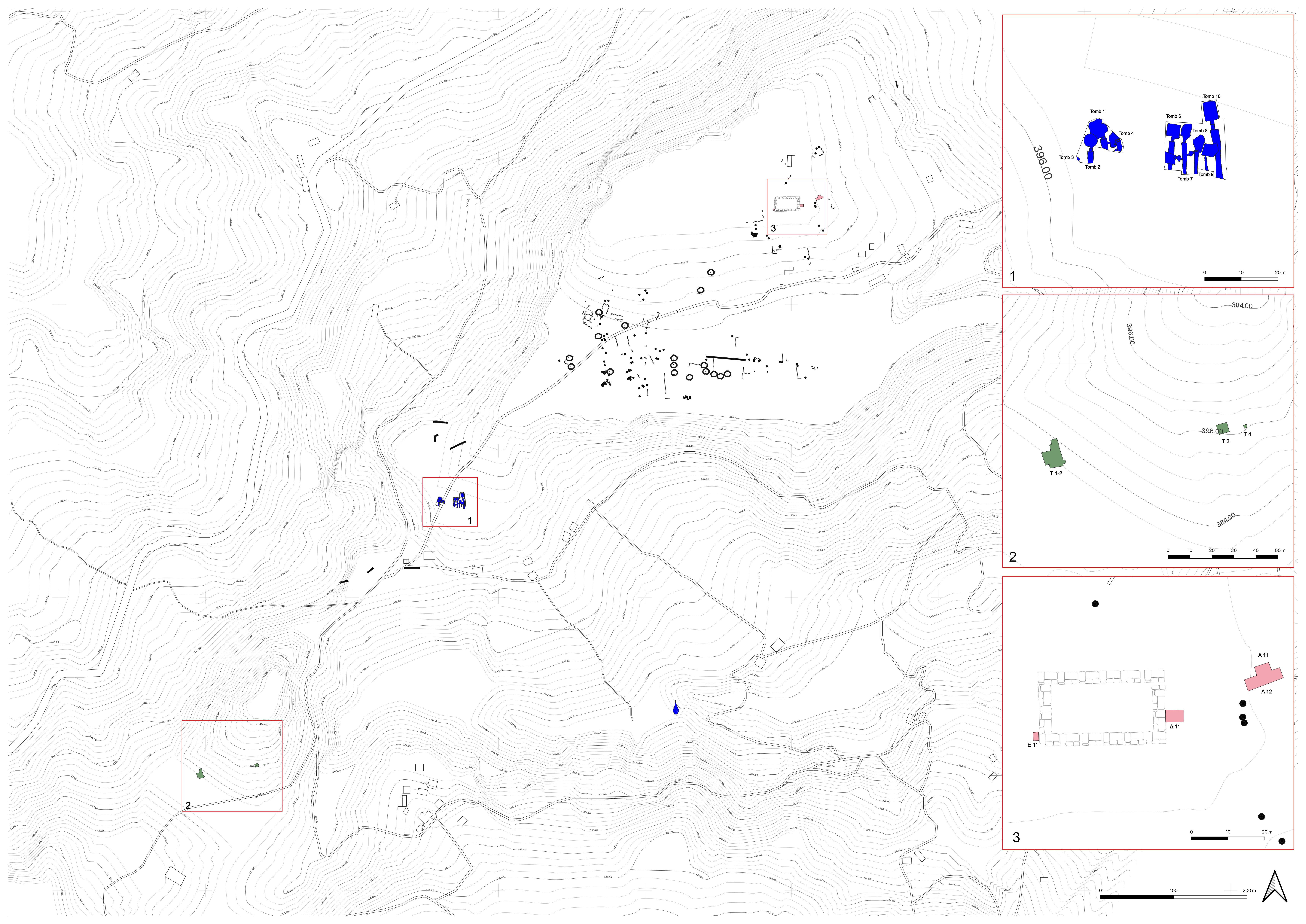 Un gruppo di tombe di età geometrica con sepolture in pithoi è stato indagato in un pianoro inferiore.